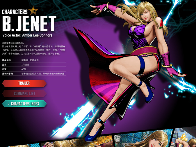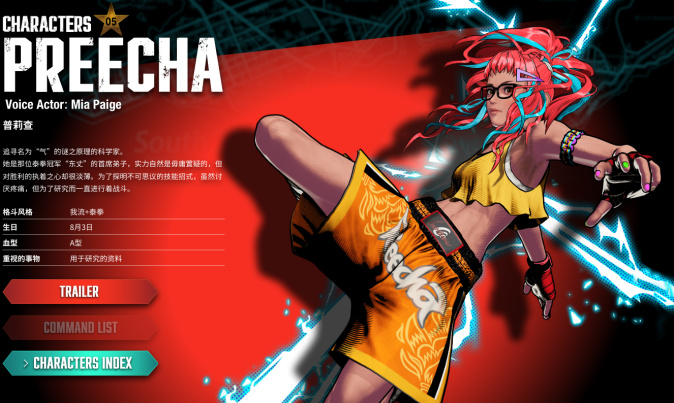 褐皮小姐姐,是泰拳冠军“东丈”的首席弟子,也是本次《饿狼传说:群狼之城》的全新登场角色,造型上面还是挺喜欢的,并且性格上也对胜利比较淡然而是专注于探索招式。