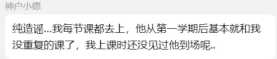 針對上述“同學”的說法,神戶小德則予以了否認,稱“他從第一學期後基本就和我沒重複的課了”。