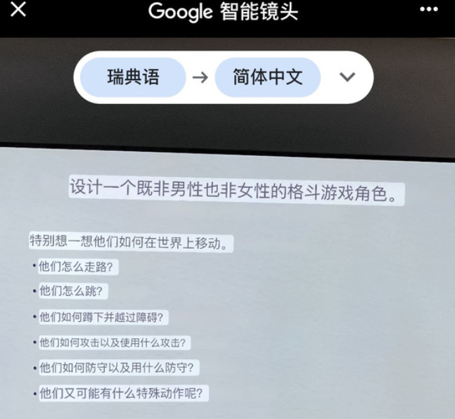莫莫和天天告訴我,這張圖更像是機翻引發的語境誤會。這一課不是讓他們去設計一個非二元性別生物,此處的“男性”和“女性”也非字面上的性別,代表的反倒是一種刻板形象,意在讓學生們在設計角色時,不要卡在“男性就該是桑吉爾夫”“女性則必須是不知火舞”的思路。