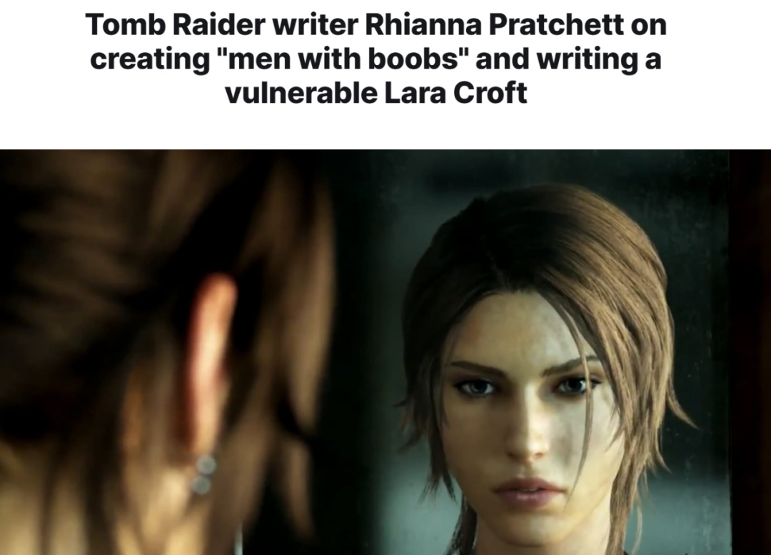 而在當時外媒的採訪中,遊戲的編劇在分享新勞拉的設計經驗時,也用到了Men with boobs這樣的自嘲。