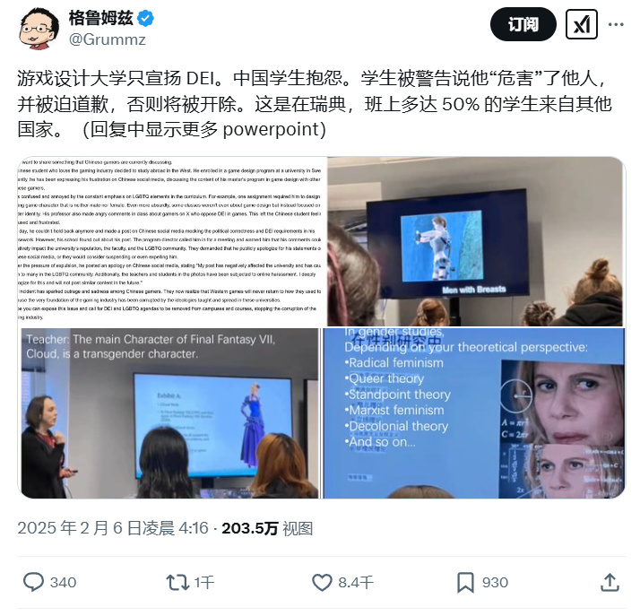 不過這個回答也證明了神戶小德拍攝的課件屬實,烏普薩拉大學的遊戲課程教學確實涉及DEI內容。對此莫莫和天天的答覆既有肯定也有否定——這些課件的照片全部屬實,但它們傳遞的意義和神戶小德描述的完全不同,而且部分原因是神戶小德聽課不完整。