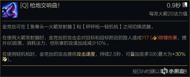 Q技能是金克絲的核心,合理切換槍形態可以最大化減速效果,提升風箏能力。