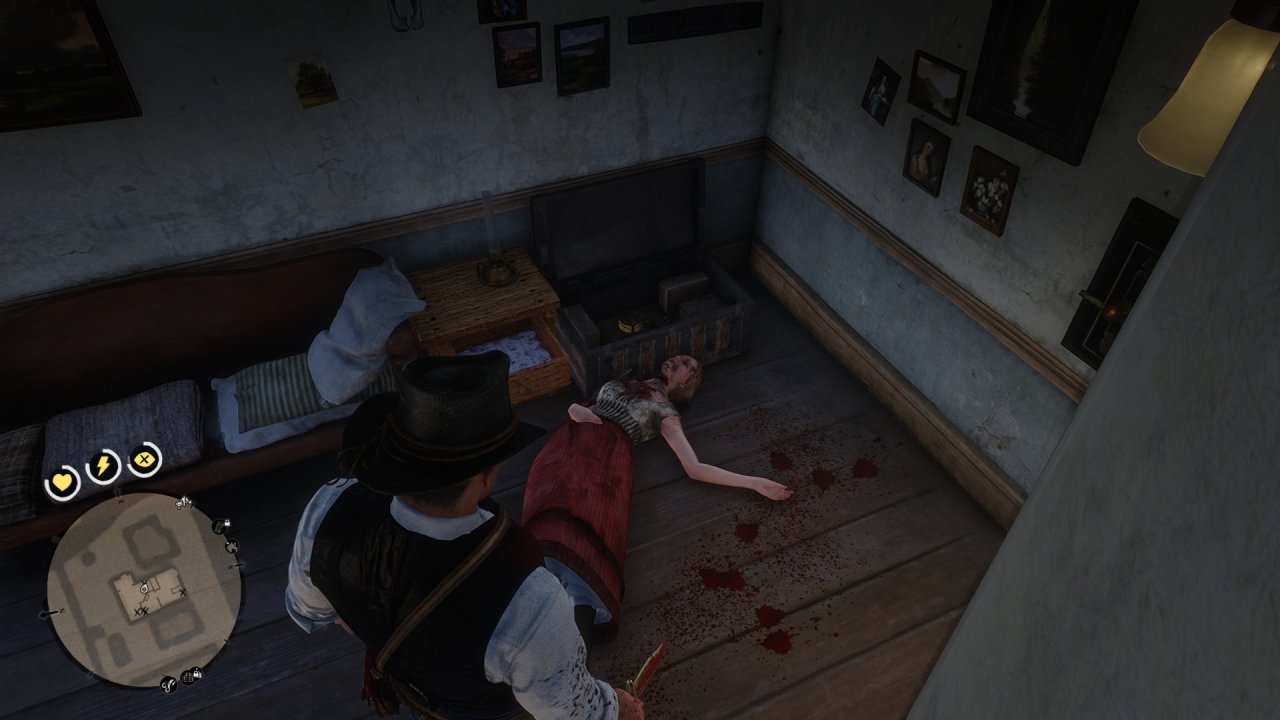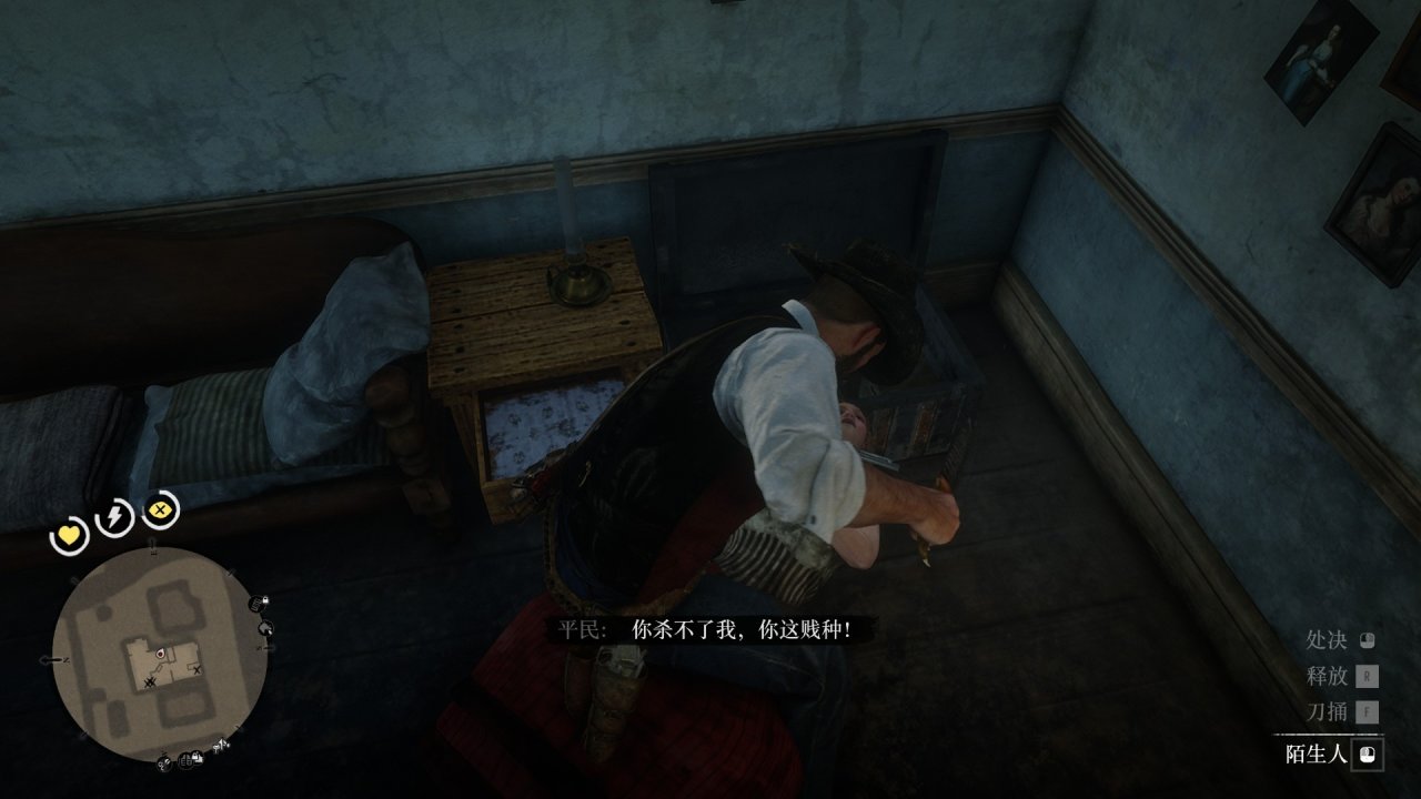 7.击杀3人后,切换匕首,快速冲进去,扑倒里面的妓女处决。注意一定要快,不能让妓女开枪。键盘是加速跑的时候按f扑倒,手柄自己对应一下。