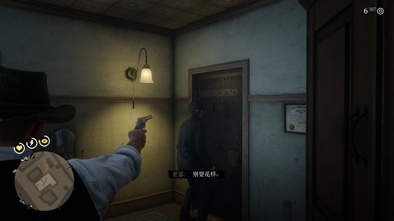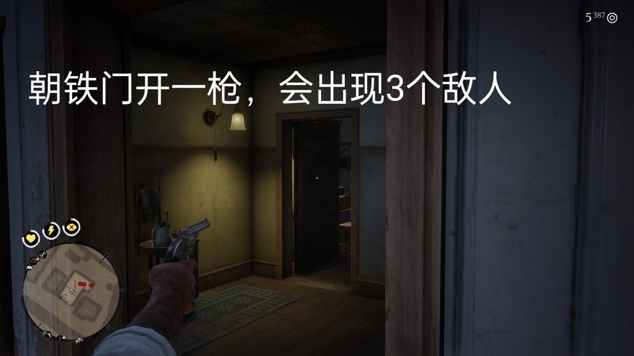 2.触发任务后,白天直接进来店里,武器瞄准老板,选抢劫密室,这里注意不要被外面人看到,(几率很小)