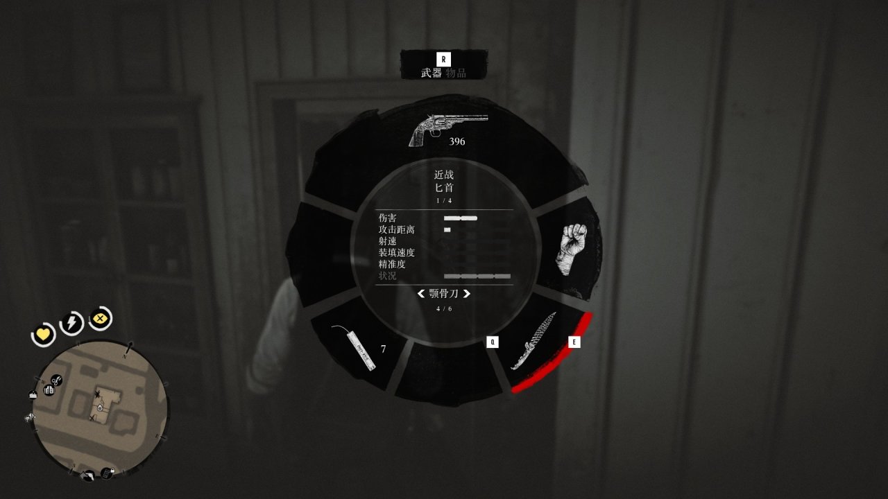9.桌子上有个箱子,里面是斯科菲尔德左轮手枪,解锁副手枪套后可来抢2次达到双持。