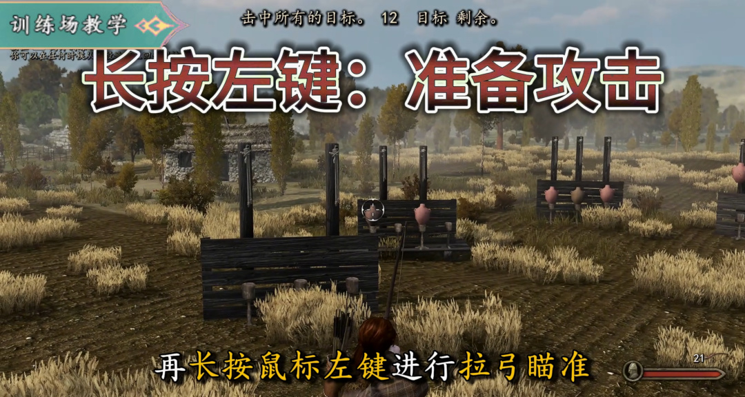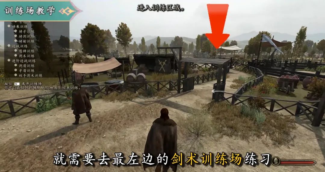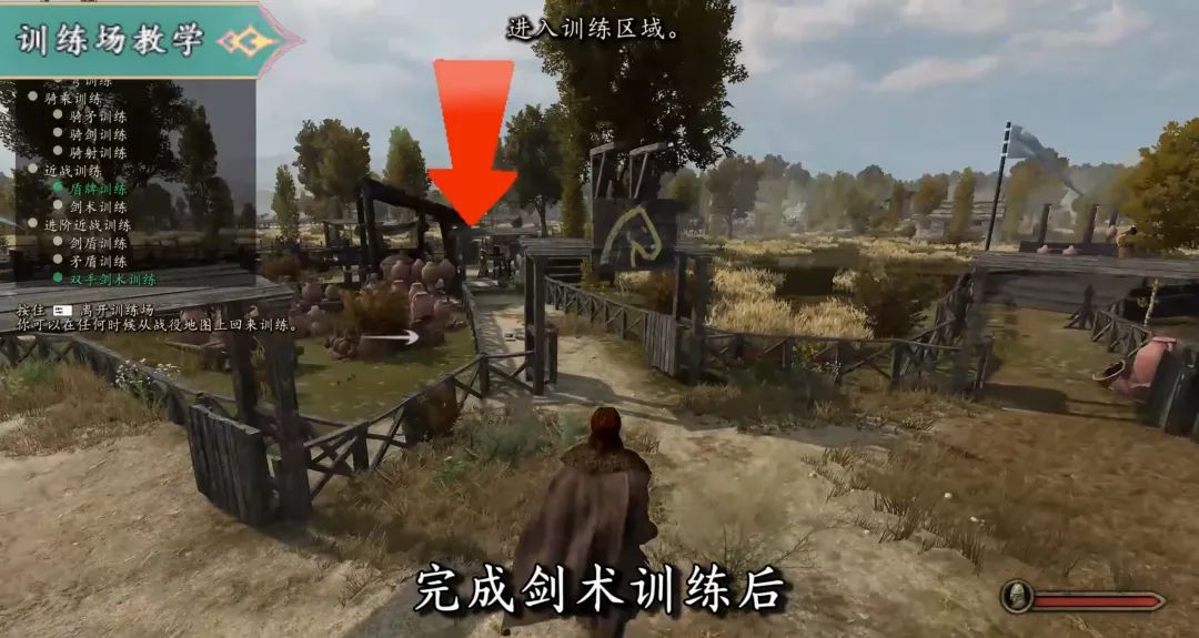 完成劍術訓練後,我們進入中間的馴馬場,先從騎射練起;撿起弓箭,上馬也是靠近後按“F”鍵,注意入口是右邊,別走錯了!