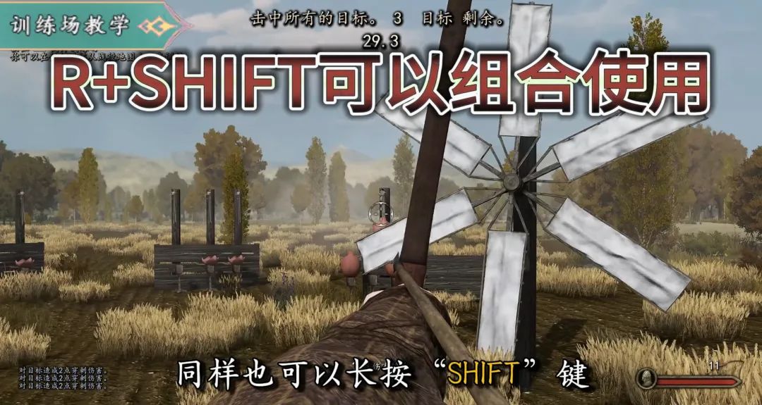 目前這些短距離目標,不論是在第三人稱下射擊,還是按“R”鍵切換到第一人稱視角射擊,都是指哪打哪的。第一人稱下同樣也可以長按“SHIFT”鍵可以放大視角哦。能夠熟練使用弓箭,前期的劫匪就能隨便拿捏了!