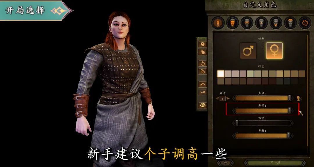 接着是捏臉界面,身體界面中可以選擇性別、膚色、聲音效果和高矮胖瘦。新手建議個子調高一些,這樣手長腿也長,格鬥會有優勢。