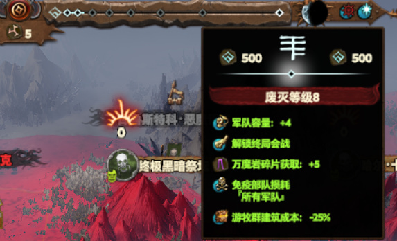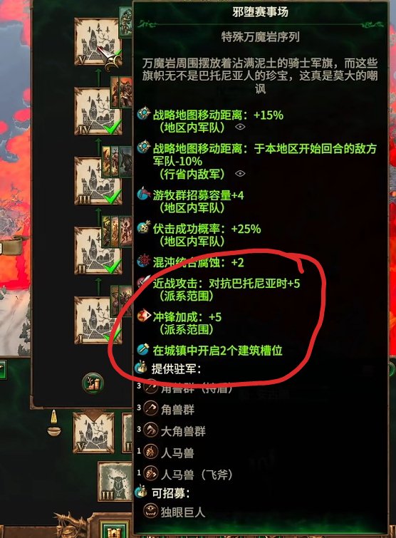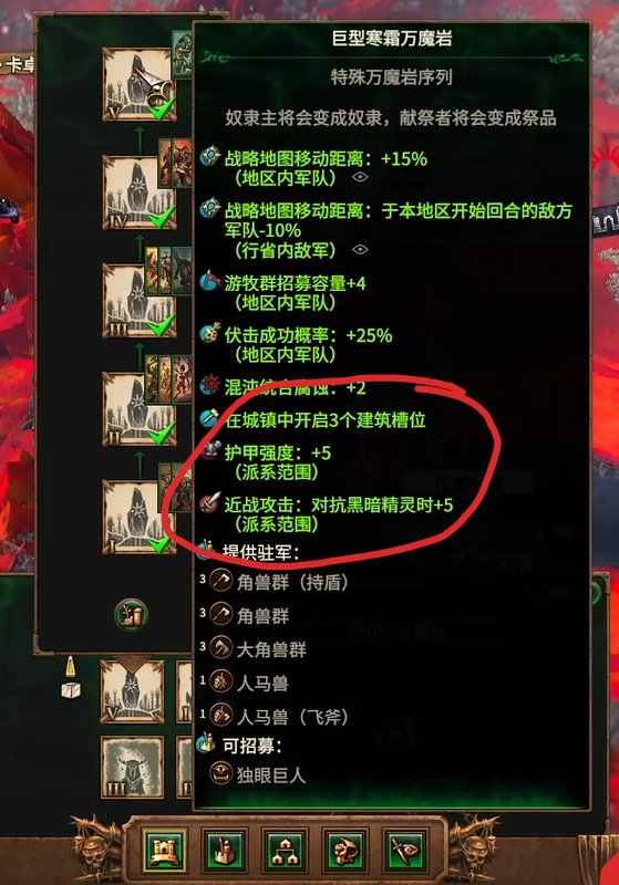 关于万魔岩,建议是只在敌人的首都建造,比如【劳恩国王】的「哥隆尼」、【卡皇】的「阿尔道夫」、【马雷基斯】的「纳迦隆德」等等各个派系的首府……这样会给你的派系增加各种特殊的增益。