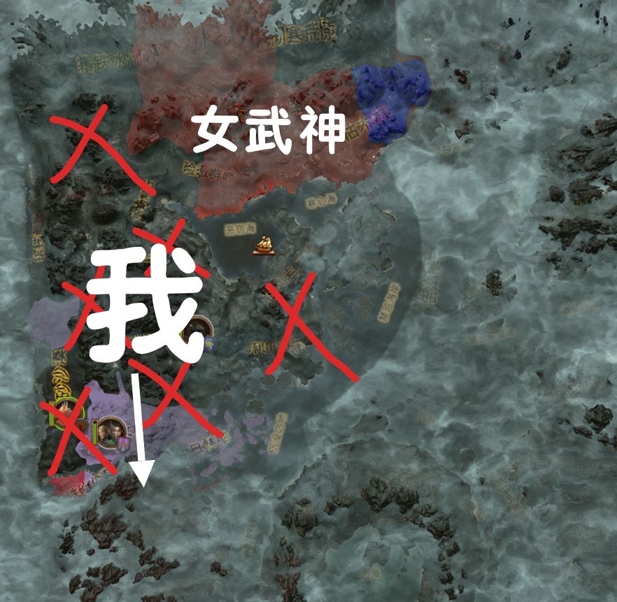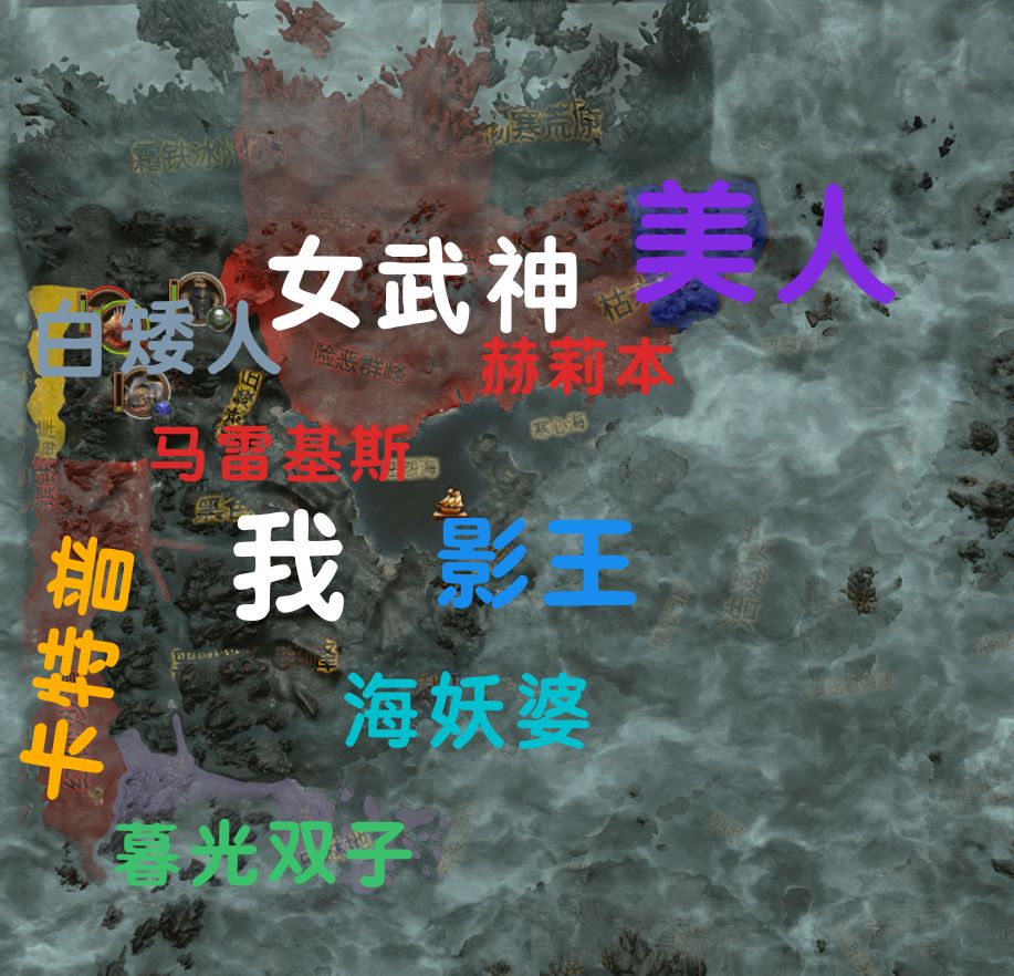 总之呢,首先消灭附近的传奇领主,比如【马雷基斯】【影王】【海妖婆】【暮光双子】【白矮人】【卡特普】等等……前中期的敌人基本就是「暗精」「高精」「木精」「矮人」「海盗」「古墓王」这些。但【女武神】会对上眼,毕竟都是恐虐,可以签不侵犯。