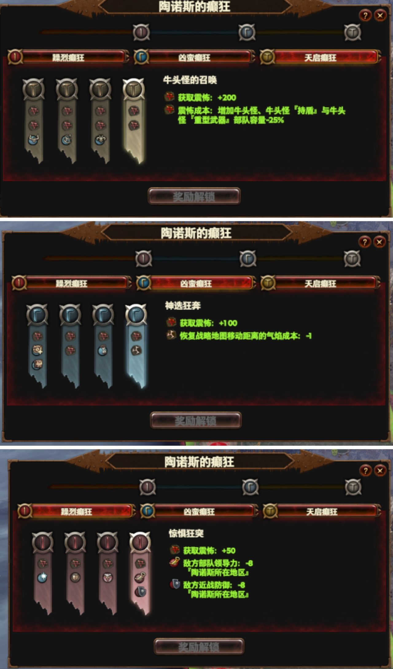 通过战斗胜利取得癫狂印记,印记累计等级可以解锁部队增益。