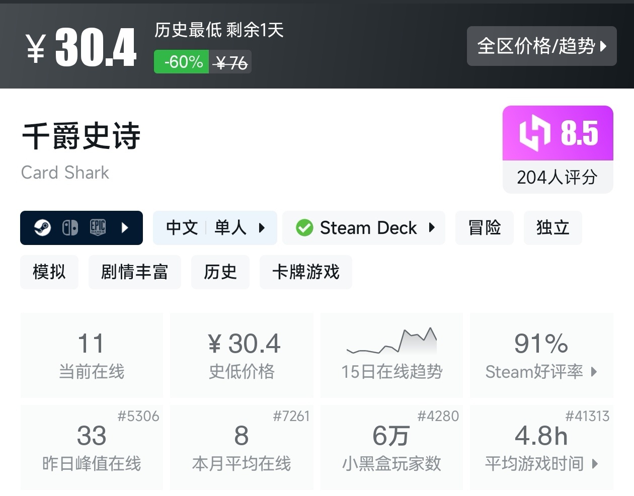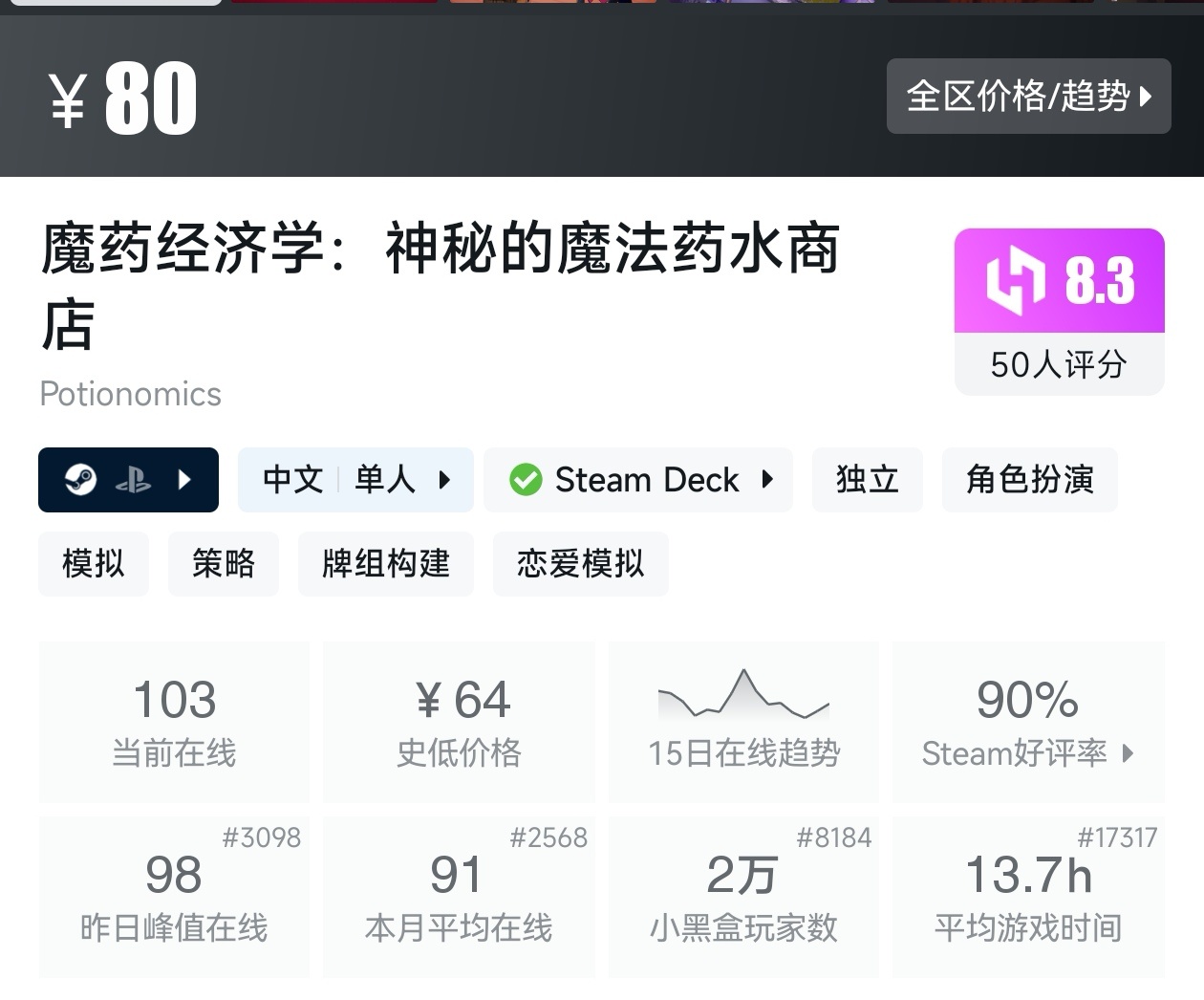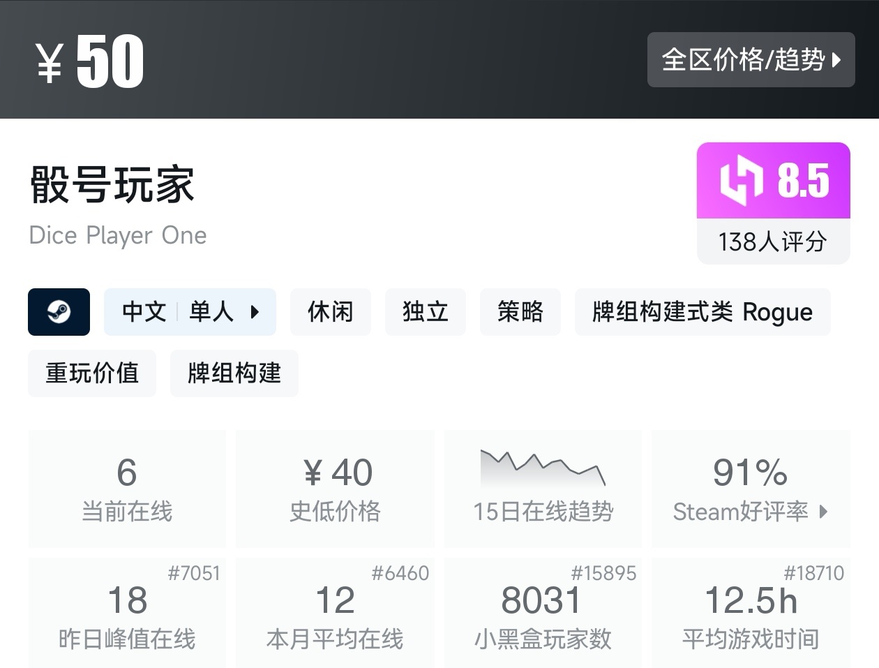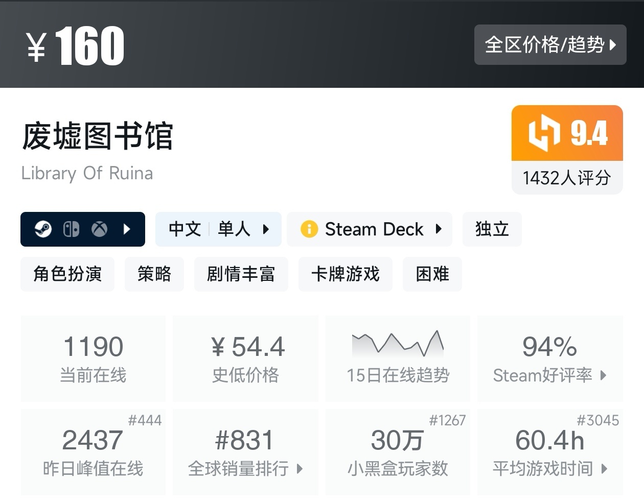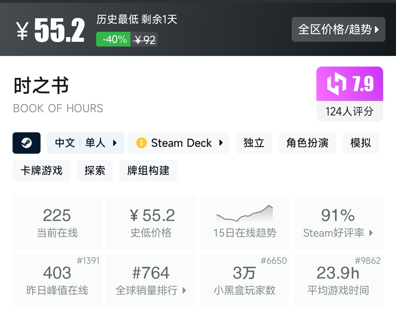 游戏的评价为好评如潮,而且还是新史低,建议搭配DLC一起食用。