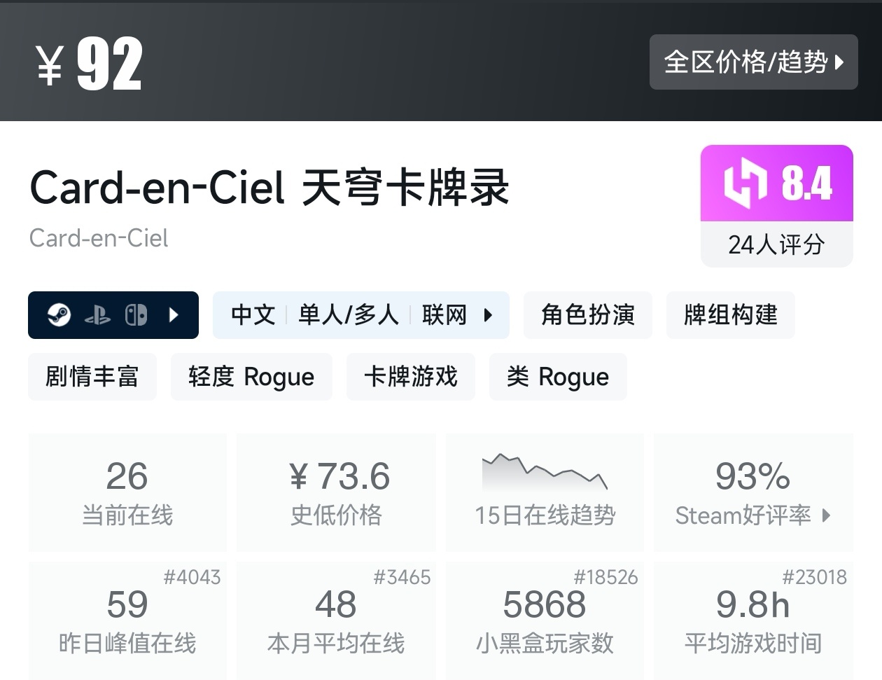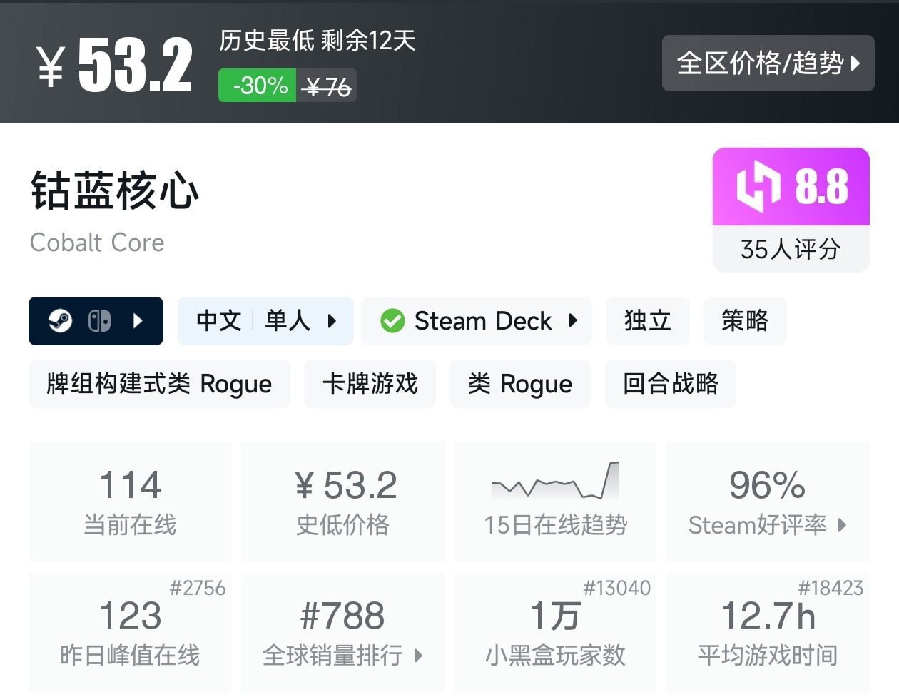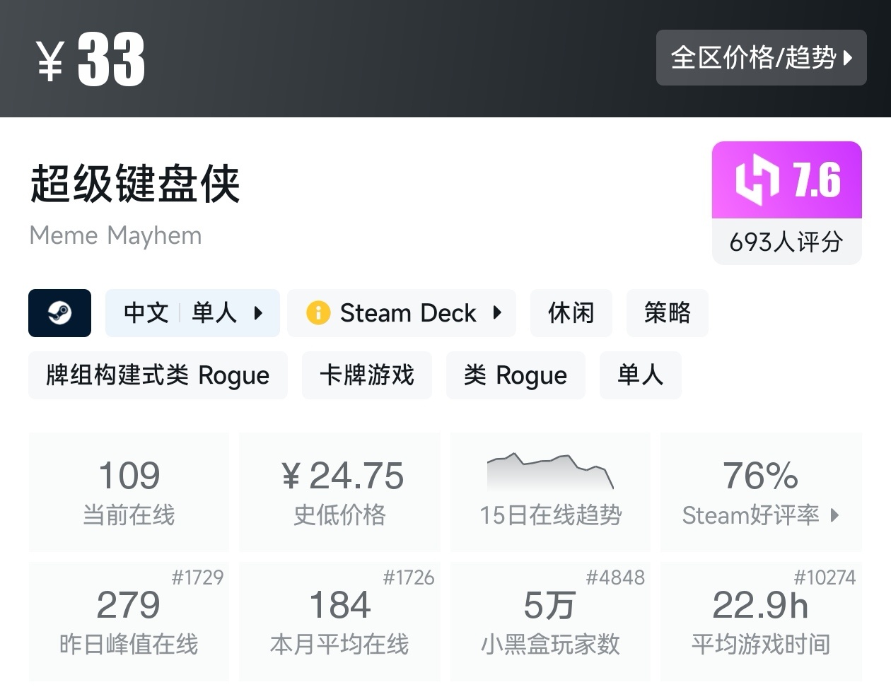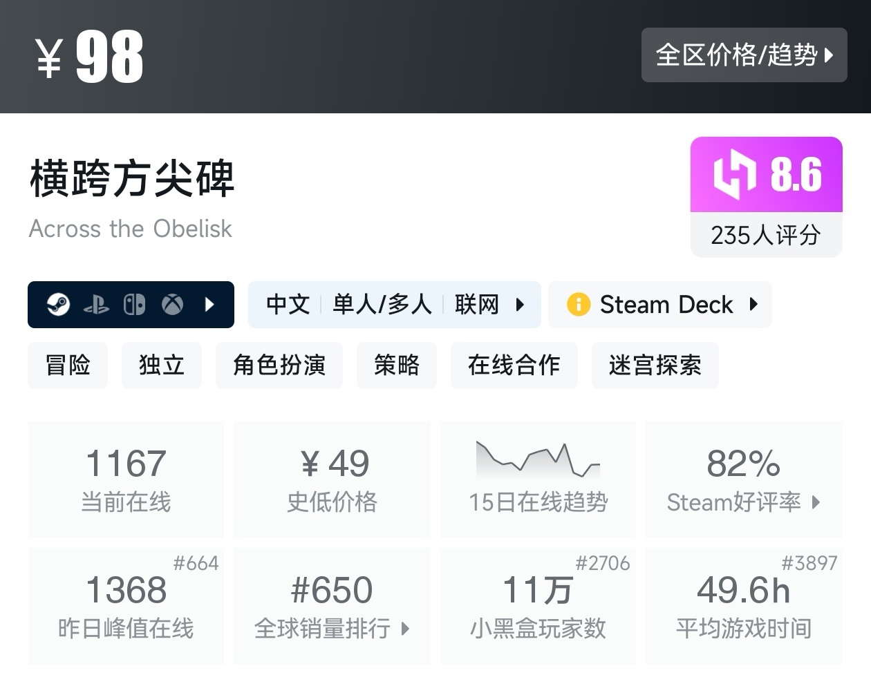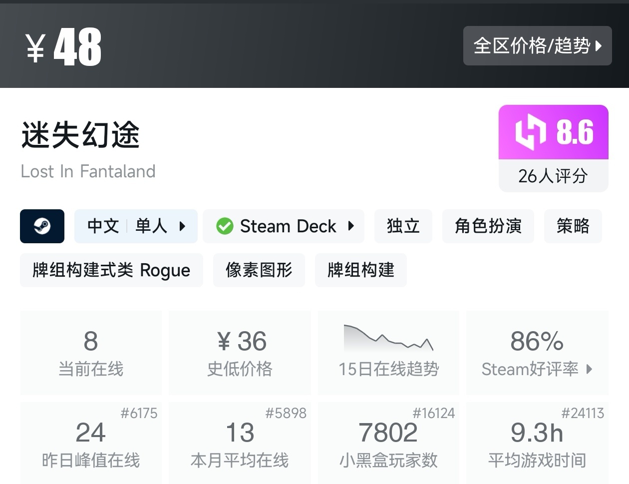 游戏的评价为好评如潮,而且还是新史低,建议搭配DLC一起食用。