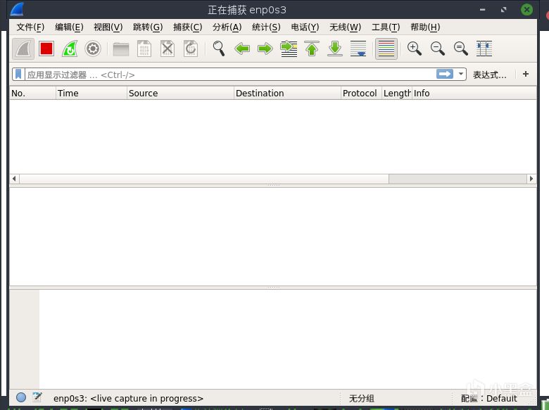 打開Wireshark,能看到Wireshark捕獲到了很多數據包,從開始點擊網絡到剛纔輸入賬號密碼之後一直在抓取,點擊左上角紅色方塊停止捕獲
