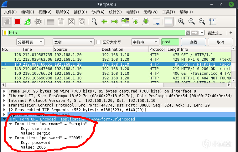 找到帶有 “HTML Form URL Encoded : application/x-www-form”的數據包,展開就顯示到我們剛纔在flask輸入的賬號和密碼了