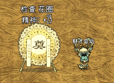 花圈:裝飾性背景,站在旁邊回覆25理智值/分鐘,密集擺放可營造靈異場景氛圍。