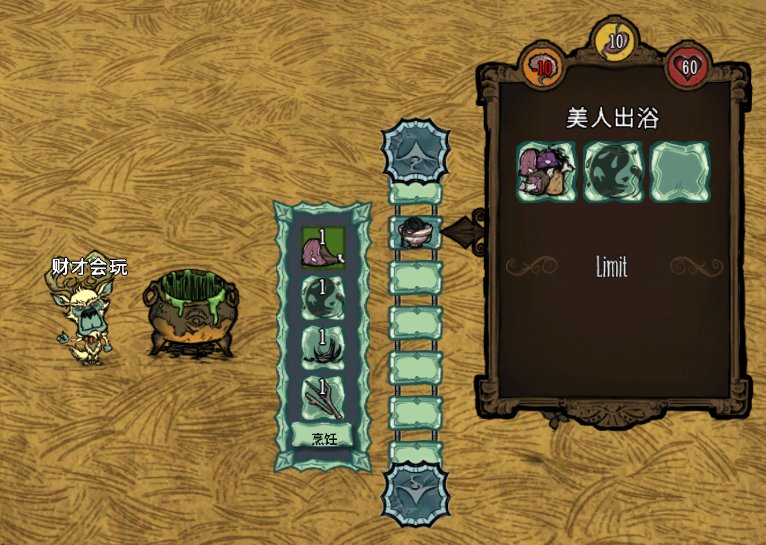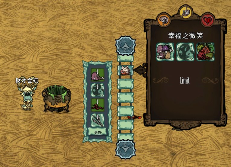 孟婆湯:使用後持續1分鐘無敵,但理智值和飢餓值還是會正常扣。