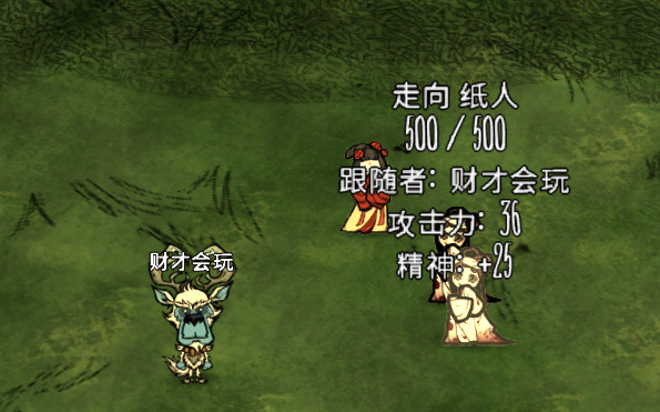 紙人入侵:Mod新增的怪物“紙人”是玩家需警惕的核心威脅。紙人在遊戲前十天不會出現,之後每晚有10%概率出現的紙人,紙人入侵時人物會有提示,血量300點、攻擊爲36點,當生命值降低到60以下時會逃離玩家,並且持續回血。掉落關鍵道具“紙錢”。
