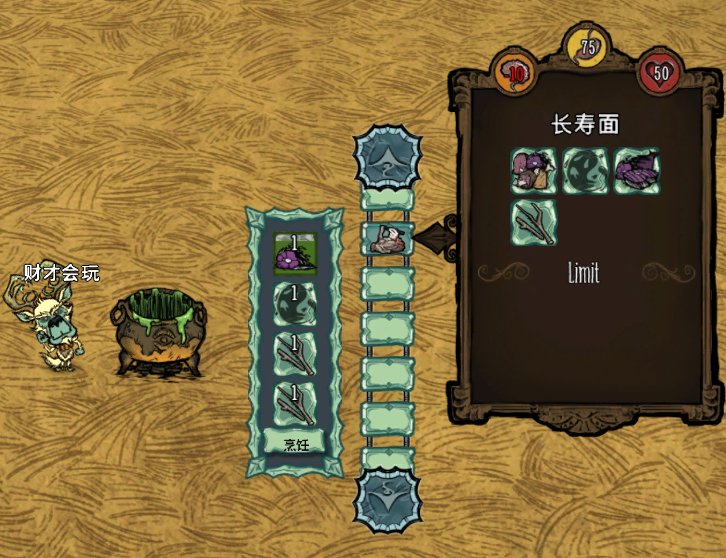 長壽麪:怪物肉+噩夢燃料+2填充物。