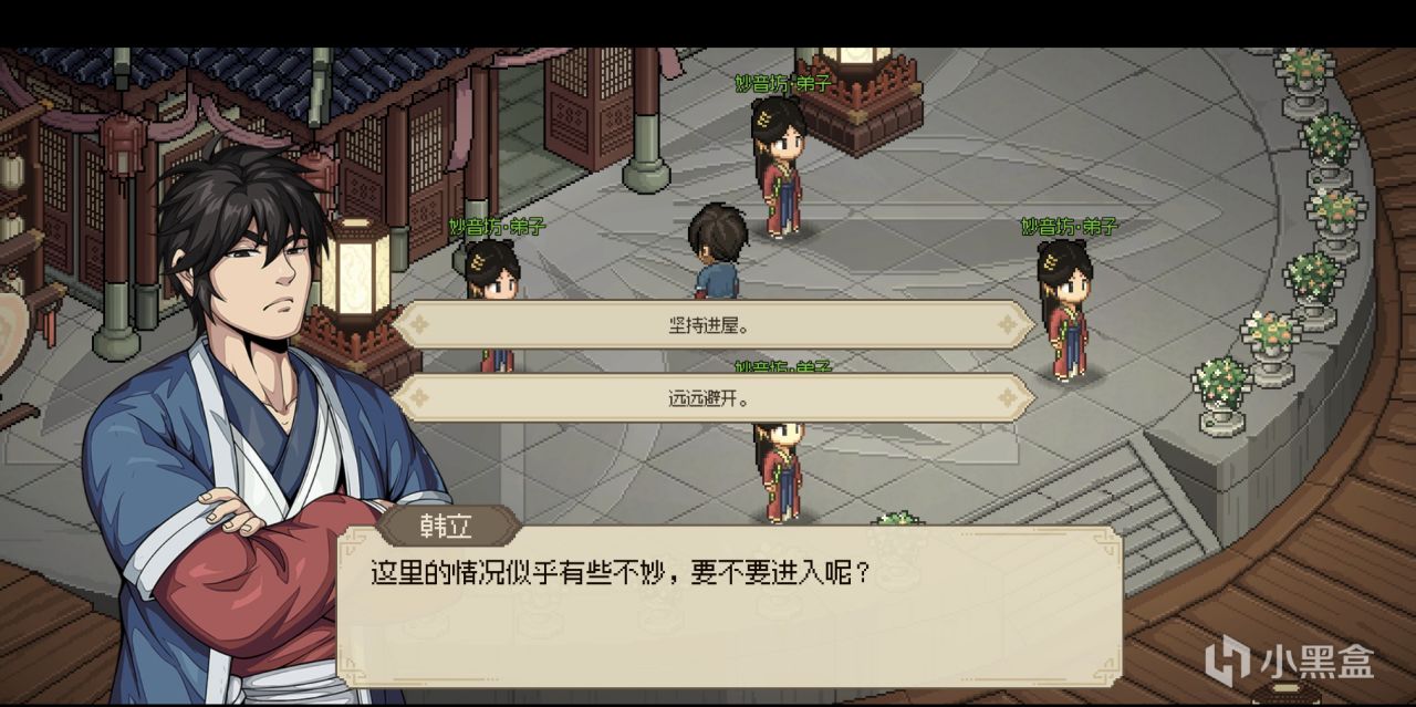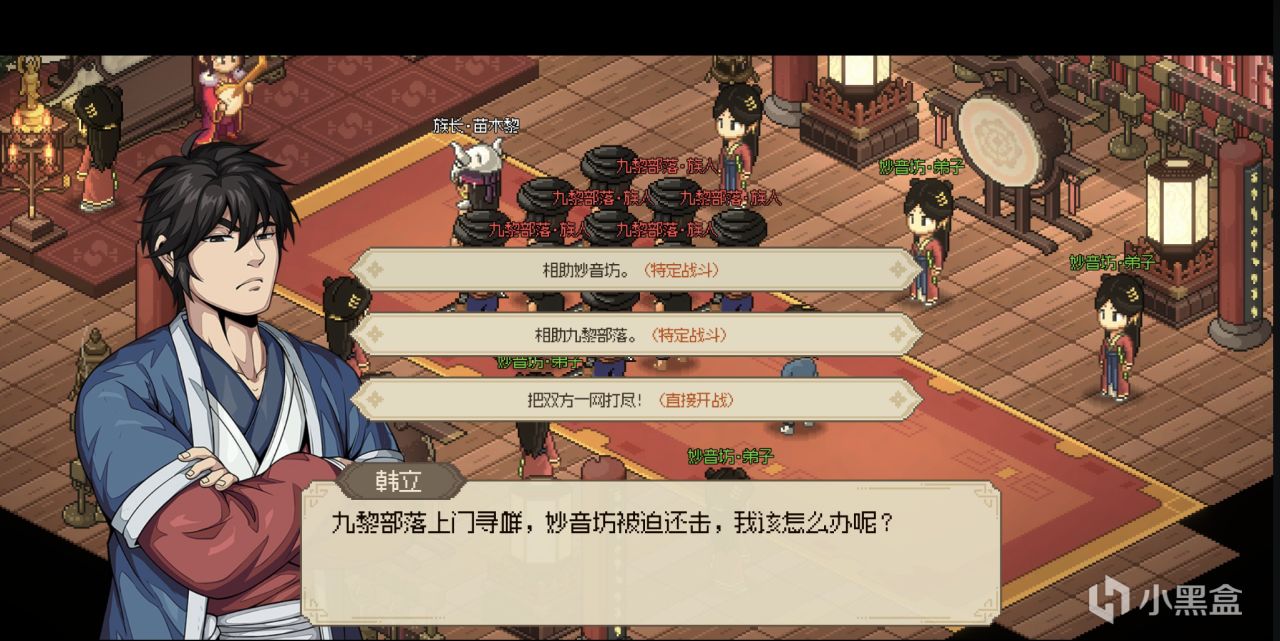 15.4.前方荒废宅院,触发剧情妙音坊与九黎冲突,一定要帮助妙音坊,后面彩蝶照样入队的