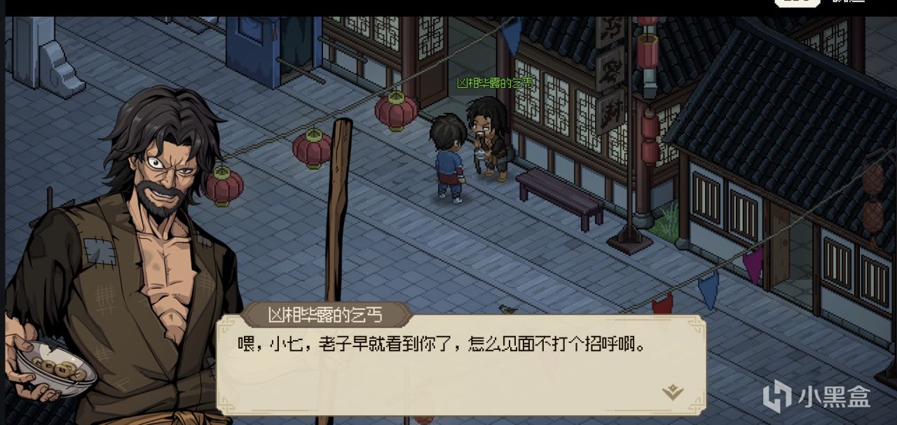 门口乞丐可以接丐小七个人任务打赢送招式没什么用,送钱多次主角触发与乞丐战斗