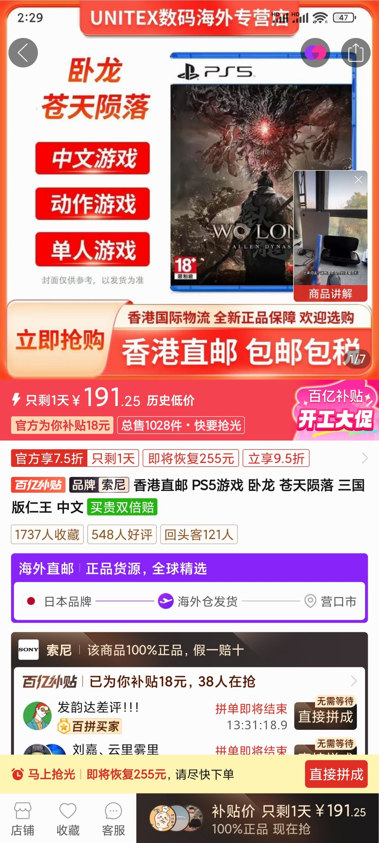 臥龍近期新低,作爲本人arpg動作誅死類作品啓蒙作,這款遊戲我還是比較有好感的,主機上優化不錯,動作機制照比仁王大幅度簡化,代價就是口碑十分兩極分化,多周目遊玩價值比較低但是前兩個周目體驗還是不錯的,三週目以後很無聊,手殘玩不來魂跟類魂的可以玩這個找找自信