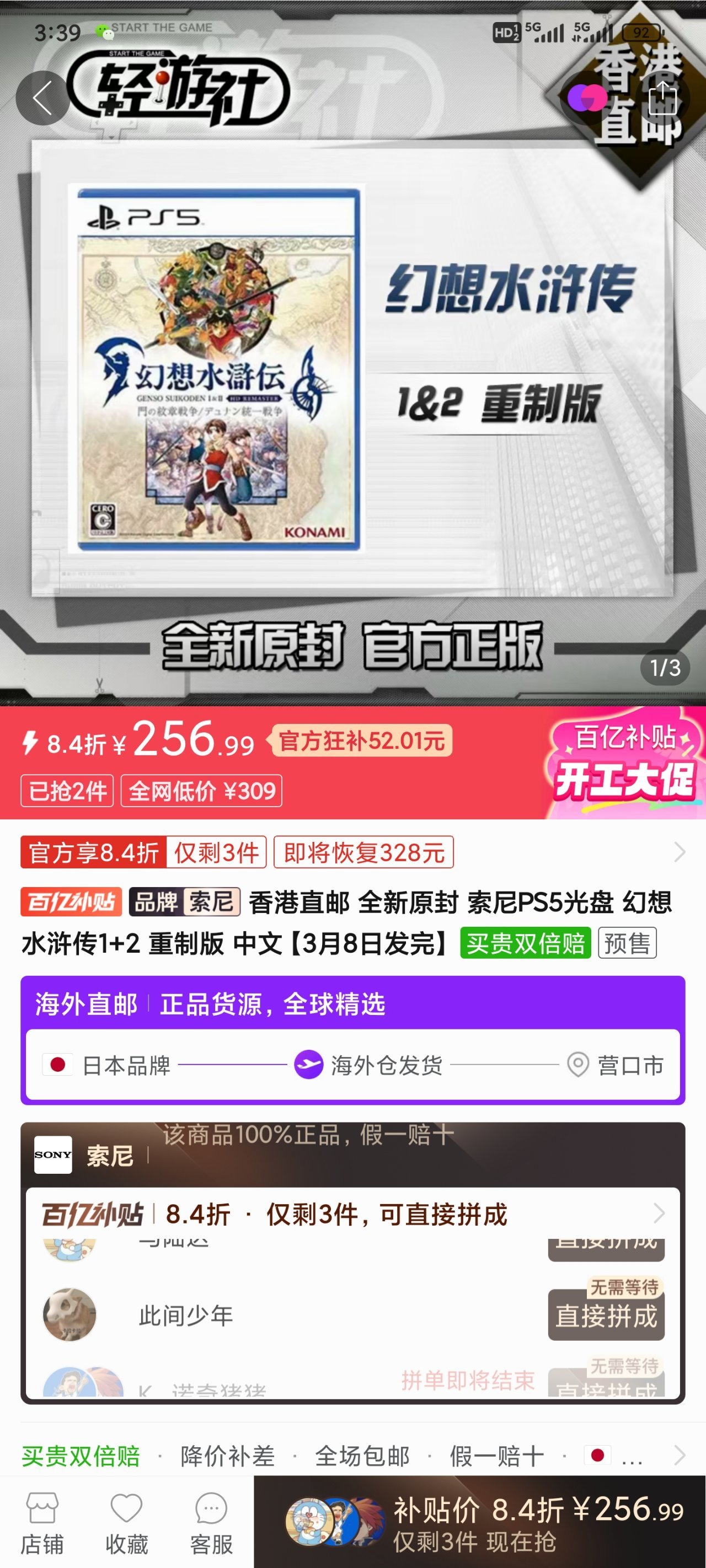 真三起源的話,上週六370帶首發特典的太香了,只亮了兩個多小時就沒了,腸子悔青,現在再買只有300-50券後376 372不帶特典的了,如果有新降價我會第一時間通知。