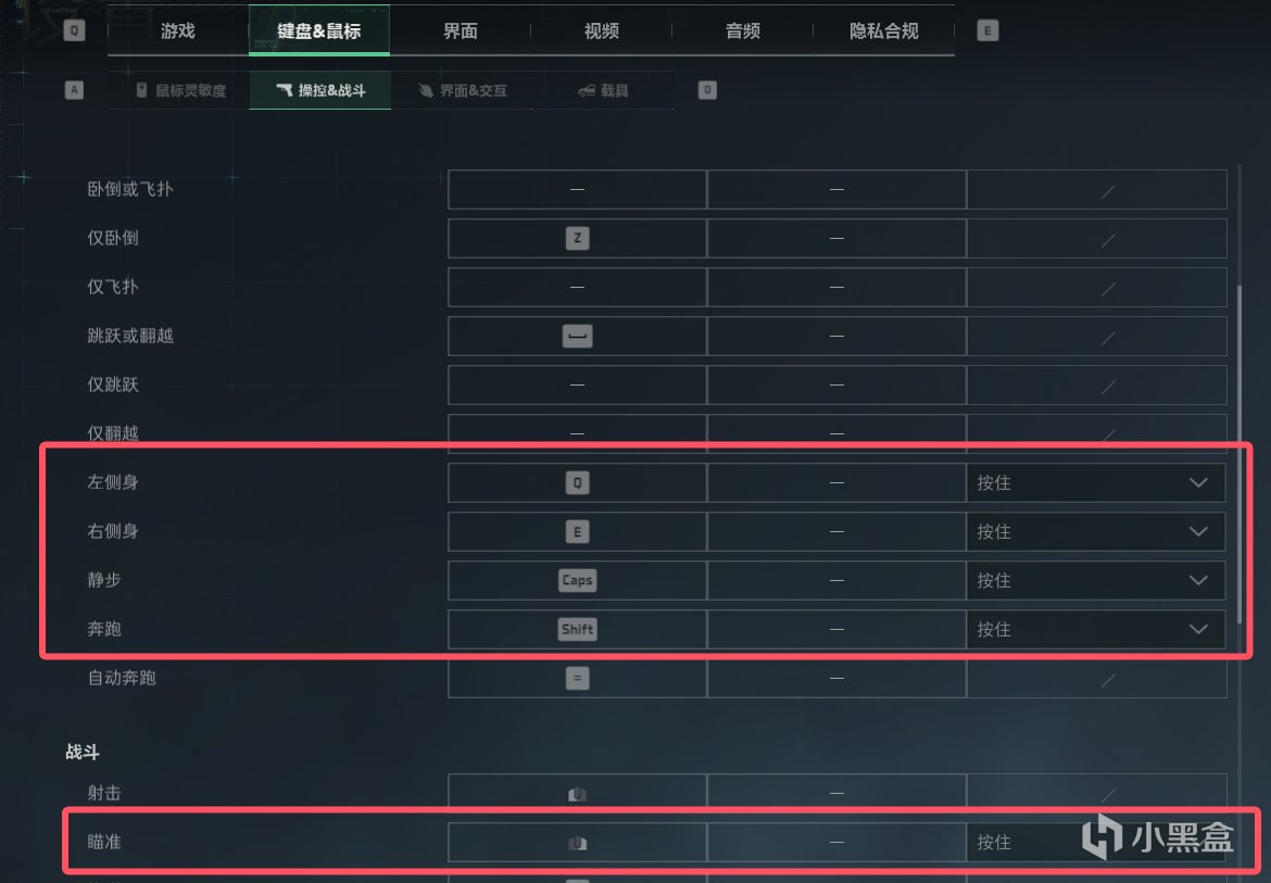 左側身:按鍵 “Q”,觸發方式爲 “按住”
