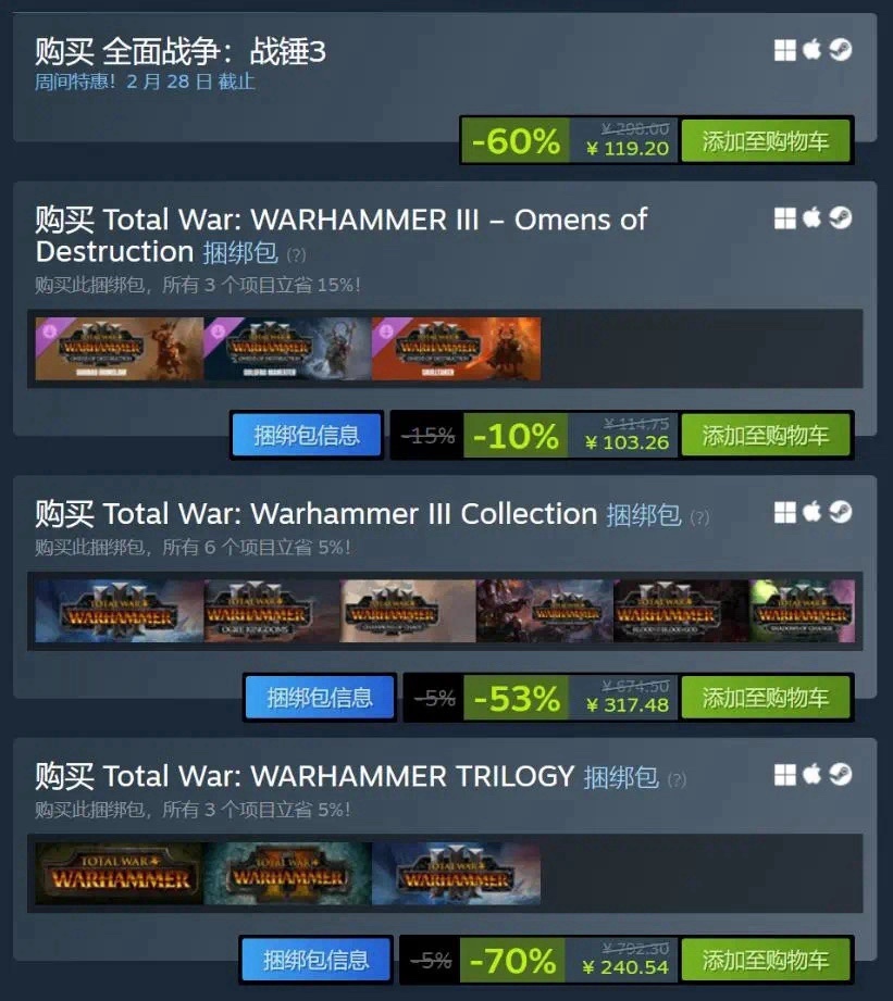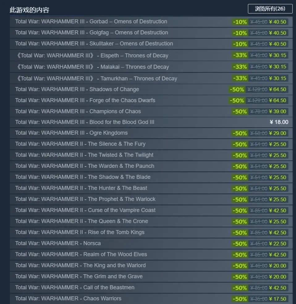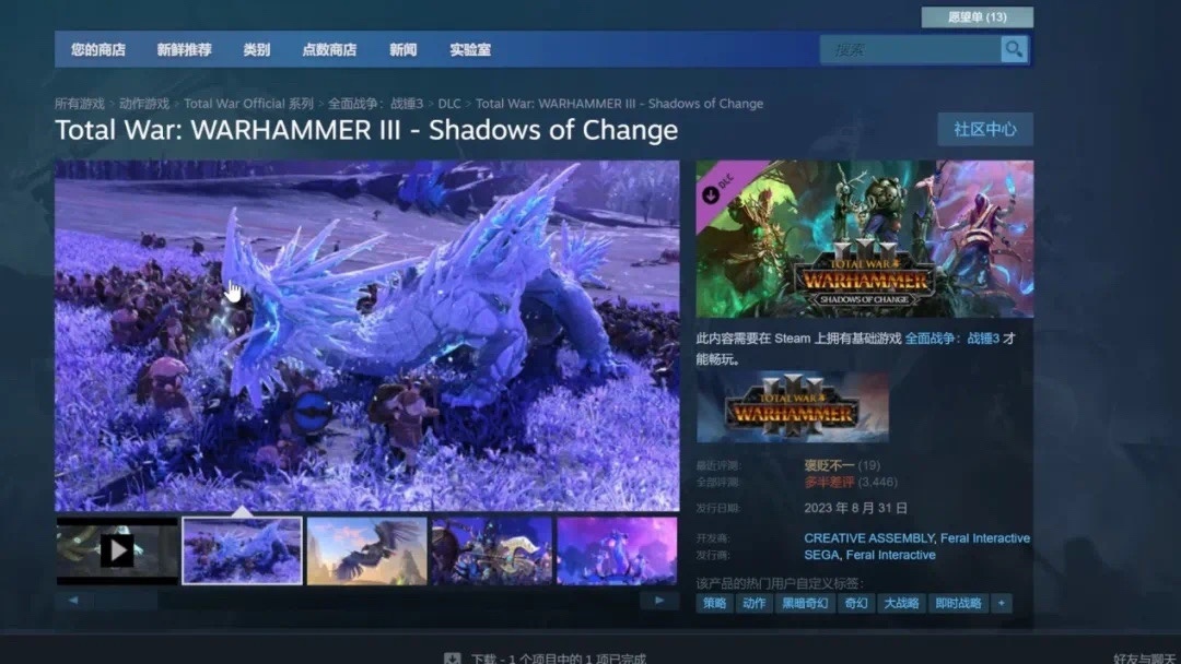 提到DLC,在Steam商店頁面上,我們能看到《全面戰爭:戰錘3》那諸多DLC評價的一長串紅字,從褒貶不一到多半差評,彷彿是在勸着玩家“快跑!”一樣,然而事實上,作爲一款持續更新三年的遊戲《全面戰爭:戰錘3》在DLC定價方面上雖然確實存在着一些問題,但是其爲遊戲本體增添的趣味性也是毋庸置疑的,例如本質算是DLC的“超凡帝國”這張無比巨大的地圖,給遊戲的玩法體驗的提升堪稱指數級,堪稱遊戲的必玩項目。