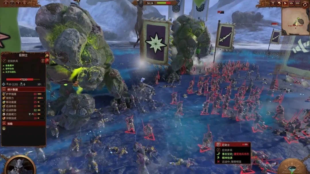 既然是《全面戰爭》,那麼由密密麻麻的軍隊方陣組成的恢弘的戰鬥場面自然是遊戲的核心競爭力之一,作爲不同於“歷史系全戰”的“魔幻系全戰”,戰場上的交鋒不再限定於槍陣與箭雨,而是有着幻想世界中戰爭所應有的一切:猛獁巨象,樹人,陶俑,大不淨者,這些恐怖的巨型單位在步兵單位面前如同小山一般橫掃千軍,高破甲的魔法更是能頃刻間將兵線蒸發於無形,這些不可思議的造物與力量,都令《全面戰爭:戰錘3》的戰鬥充滿了神話般的磅礴感與史詩感。