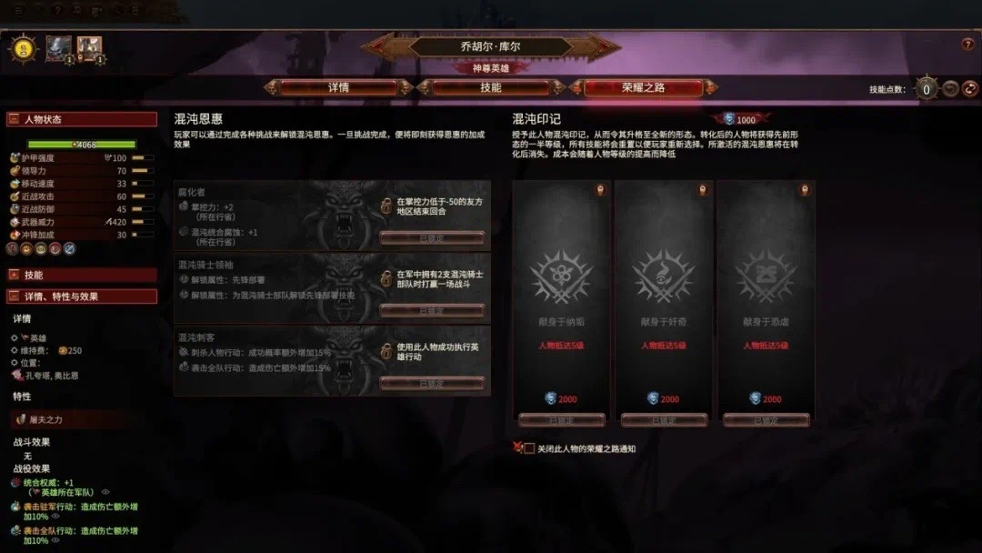 比拉克派系中,混沌勢力的英雄們有着多條混沌的晉升方式