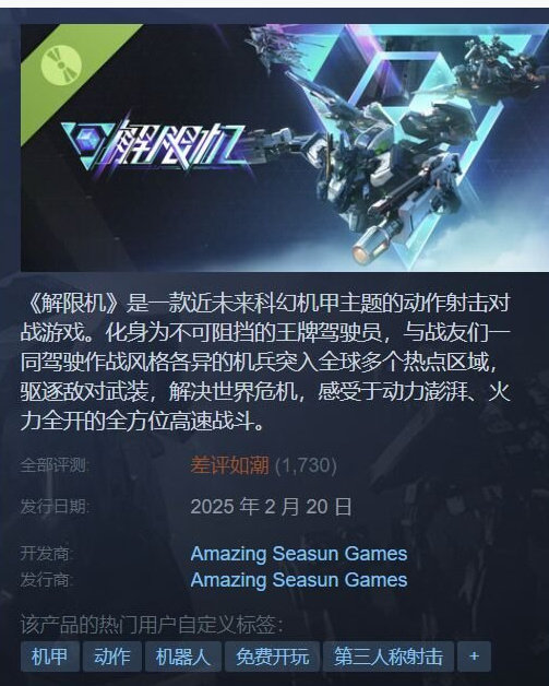科幻機甲射擊遊戲《解限機》昨日18:00開啓「全球風暴」SteamDemo測試