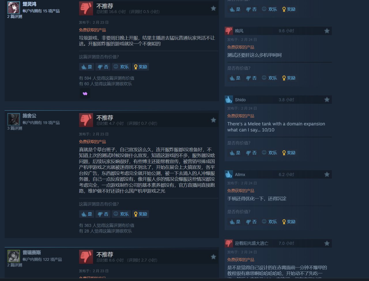 我仔細的看了一下評價大部分都是因爲開服及炸服的問題寫的差評,關於內容的也有一些吐槽,但還在我的接受範圍之內。