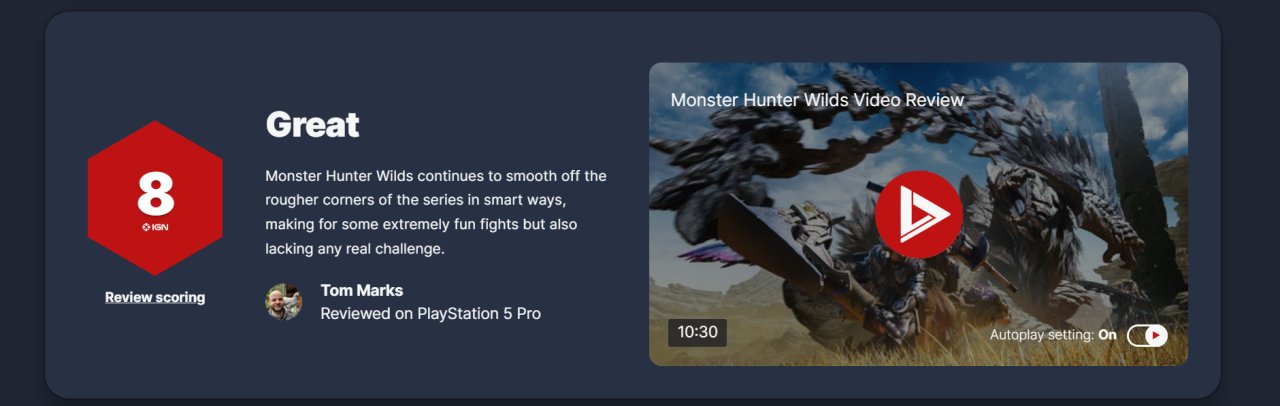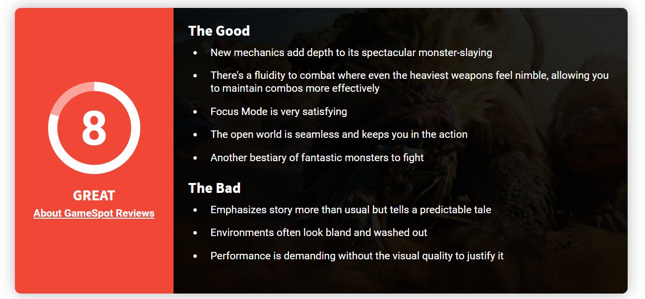 《怪物獵人:荒野》媒體評分解禁:MC/OC 89分,IGN GS雙8分