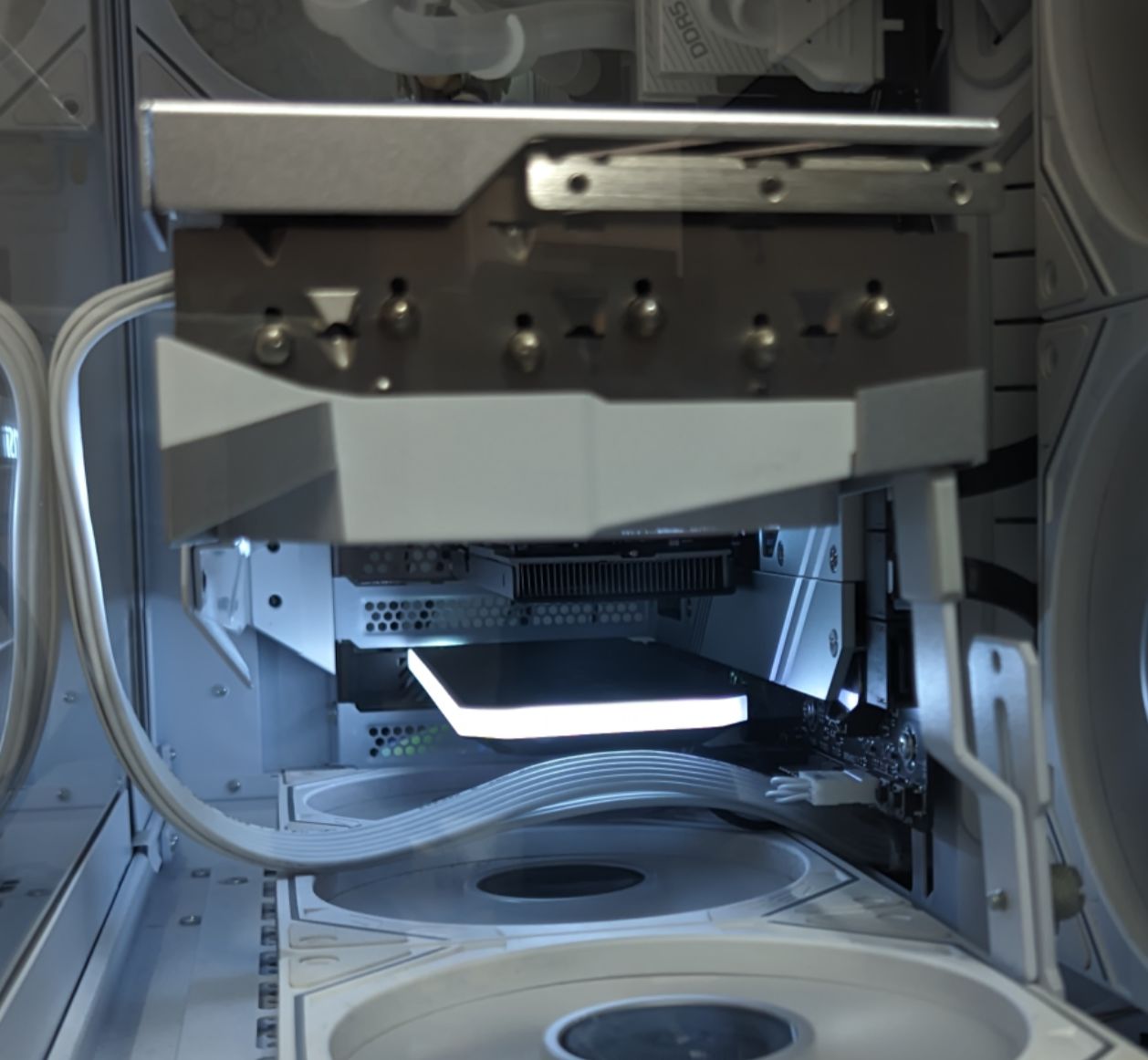 略微阻挡了4070ti的进风,但由于这张是早期版本的4080模具,散热冗余极强,温度影响不大