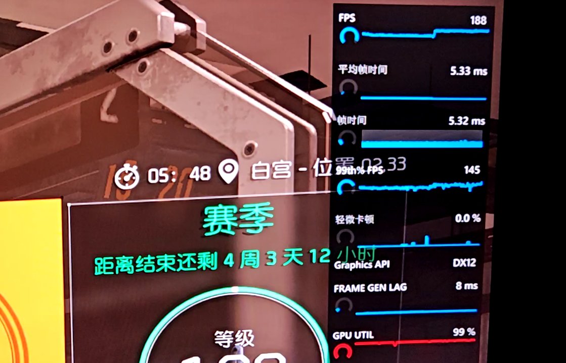 全境封锁2低画质干到电竞帧率,室外高负载环境降至70fps,插帧后依然可以达到120fps+