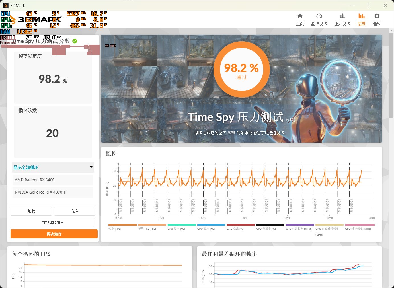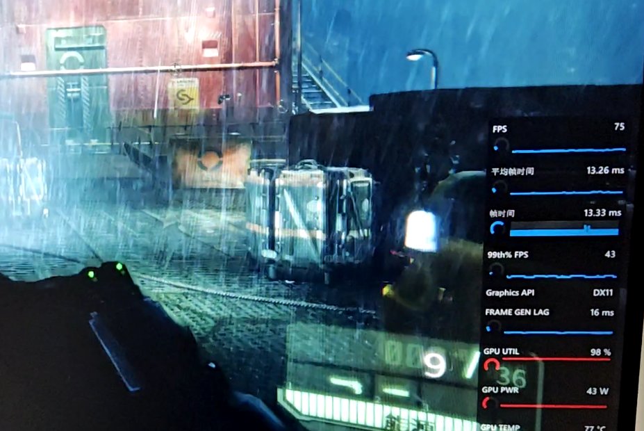 而4070ti本身也有dlss3光流插帧,当dlss3+afmf左脚踩右脚后能得出这样的效果(输出测试为1080p,rx6400带我主屏相对吃力)