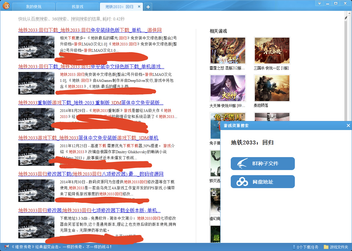 幾乎所有的還能搜索到的單機遊戲只剩下“搜索下載”,會把你跳轉到網站鏈接,曾經強大的功能已經消失。