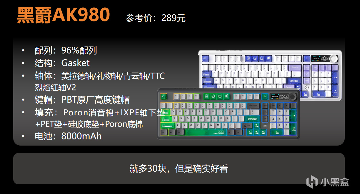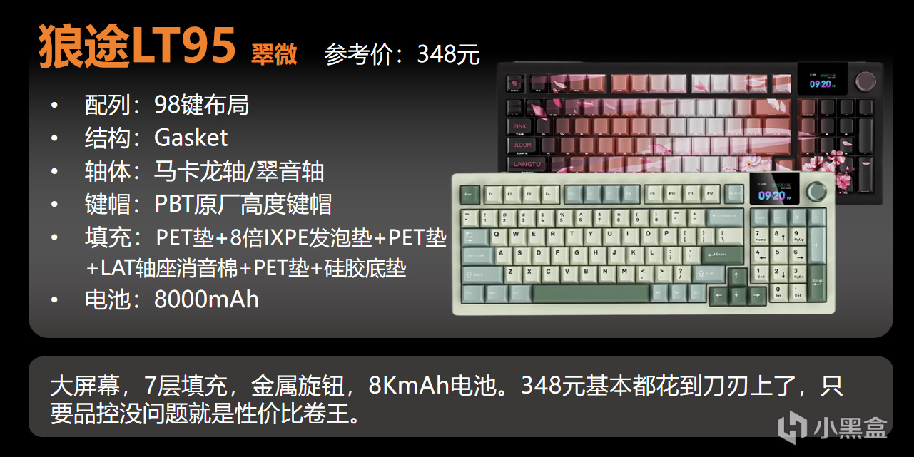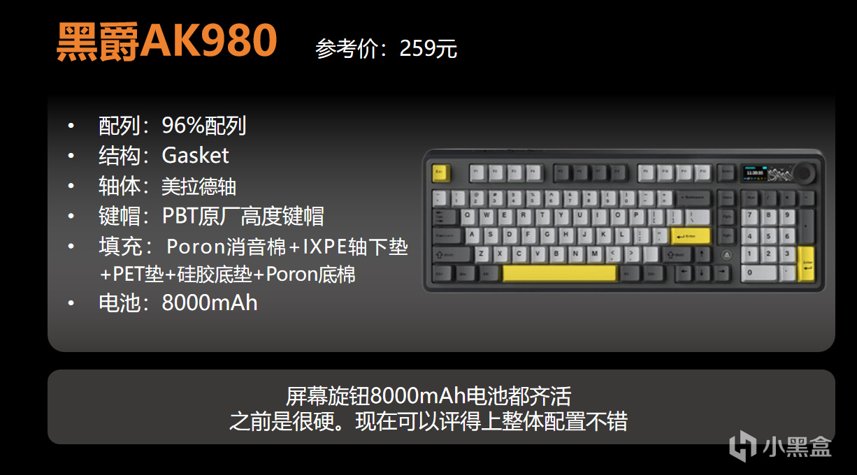 如果你其實只想買個一步到位的塑料鍵盤,可以考慮美拉德軸,只要259元,拿到三模,8000mAh電池,以及屏幕和旋鈕。還是比較划算的。