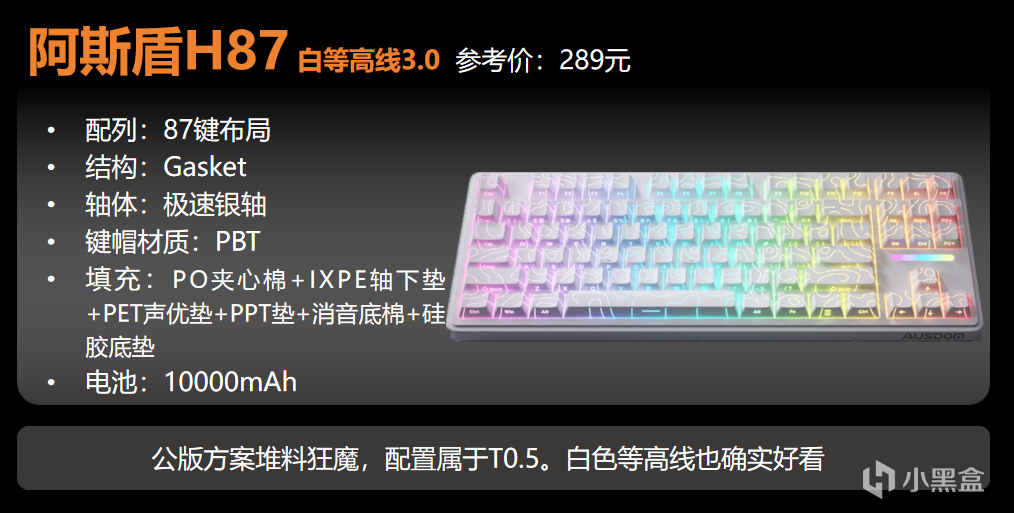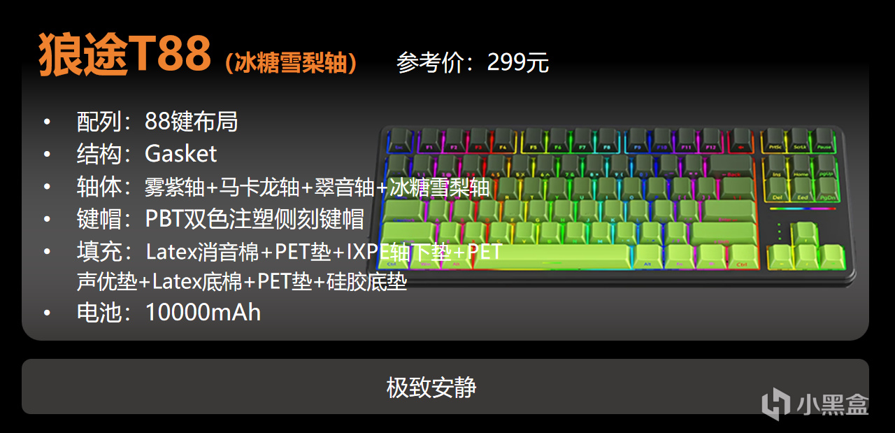 推薦這款鍵盤的原因很簡單,它是全新模具,增加了RGB燈箱,顏值超高。可以說真的就是“平民法拉利”