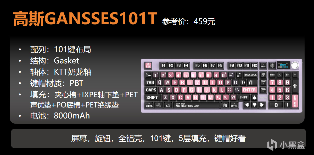 99元可以得到小屏幕+旋鈕+Gasket填充+背光+全鍵熱插拔+7000W次壽命的軸體,這性價比很高了!