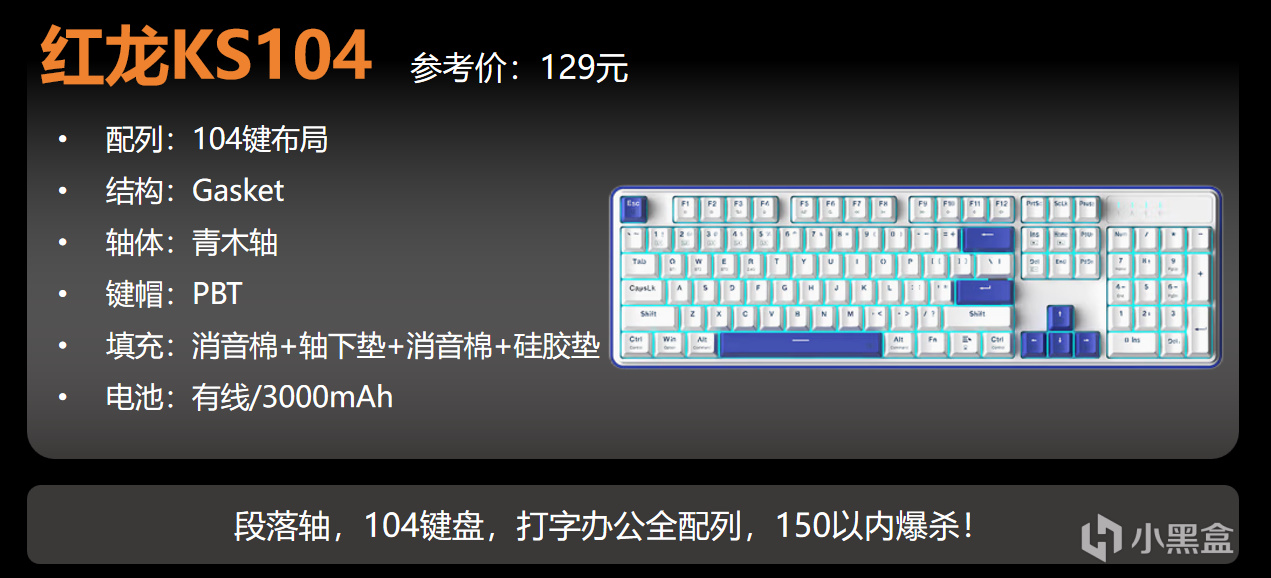推薦這個不是很知名的品牌是因爲500元以上的104配列鍵盤幾乎找不到。無論是切賽道去鋁殼+磁軸的軍備競賽 還是104配列客羣少了,PM懶得開項目,結果就是沒人做104配列的高端鍵盤