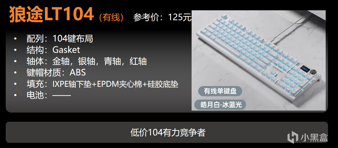 前面提到了狼途的LT84,能挺進100元,104配列就沒那麼幸運了,多了不少鍵,挺進100幾乎不可能。