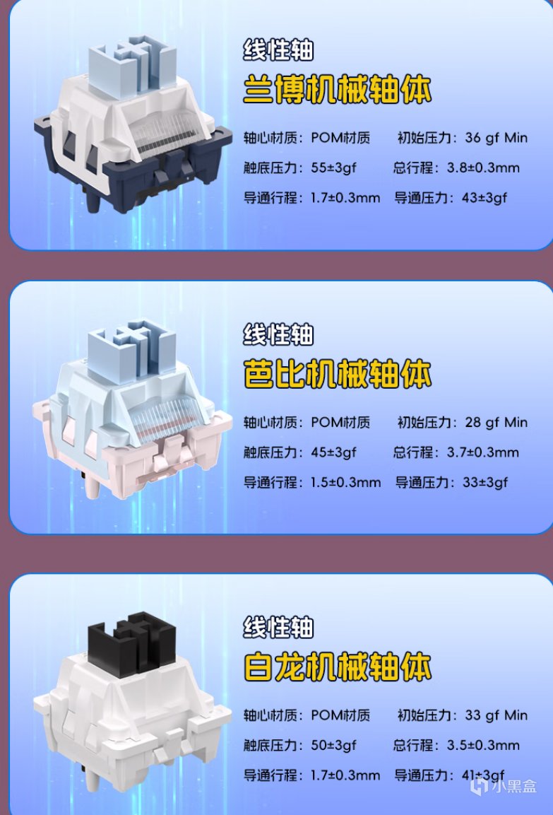 全系都是499,軸體也就KTT奶龍軸一個,42克觸發壓力,4mm行程稱不上一個輕壓力軸體。但是敲擊可以有節奏感。