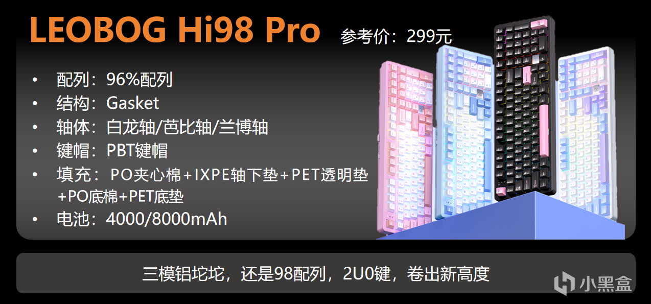 如果不需要無線功能,也可以選159元的Pro版本,PBT鍵帽,FR4金邊定位板,紫星磁軸,配置都一樣。