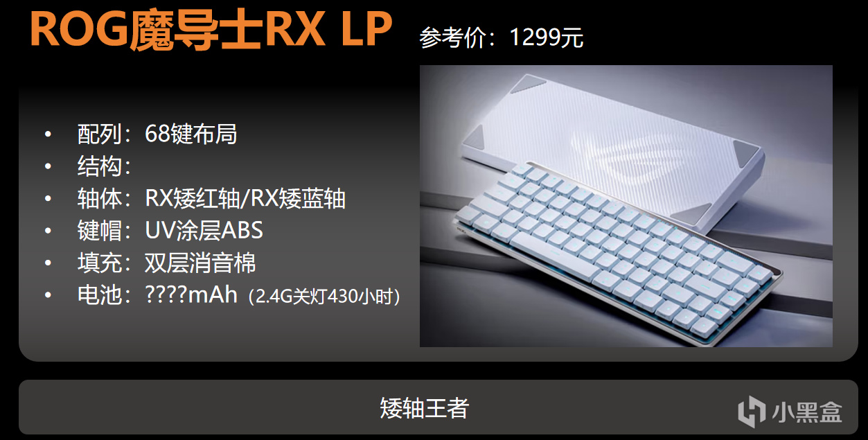 如果你預算到了1K以上,想要三模遊戲鍵盤,還不想用掌託,ROG的這款魔導士RX LP會很合適你。不過,矮軸的魔導士一直都只有白色可選。