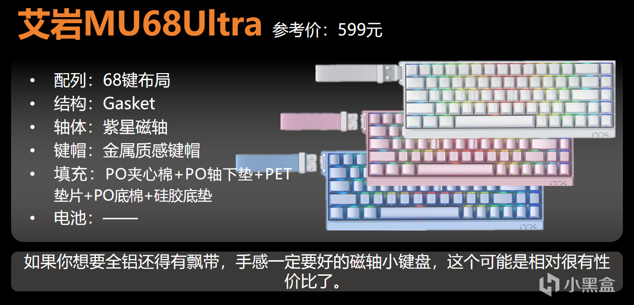 如果你想要全鋁還得有飄帶,手感一定要好的磁軸小鍵盤,這個可能是相對很有性價比了。