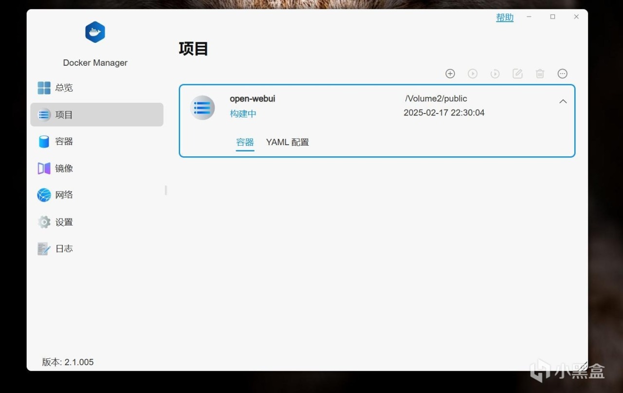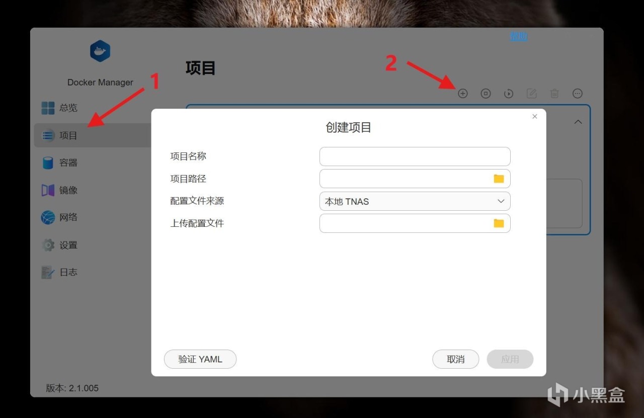 点击“Docker Manager”,依次点击“项目”——“+”,开始创建新的项目。