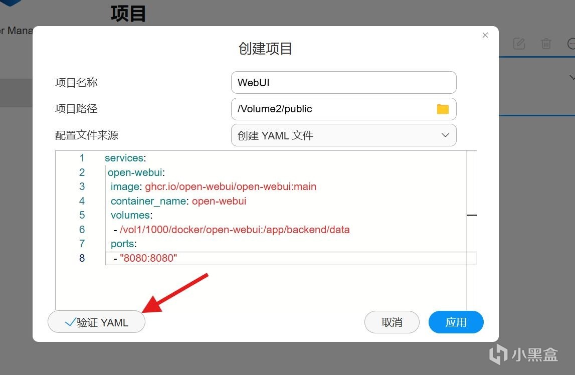 强烈先将代码复制粘贴至文本文档,再从文本文档中复制粘贴至对话框里,可以避免将网站内嵌的格式粘贴至对话框内。粘贴完毕后,点击左下角“验证YAML”,如果验证通过,会有一个“√”,这是点击“应用”就可以了。