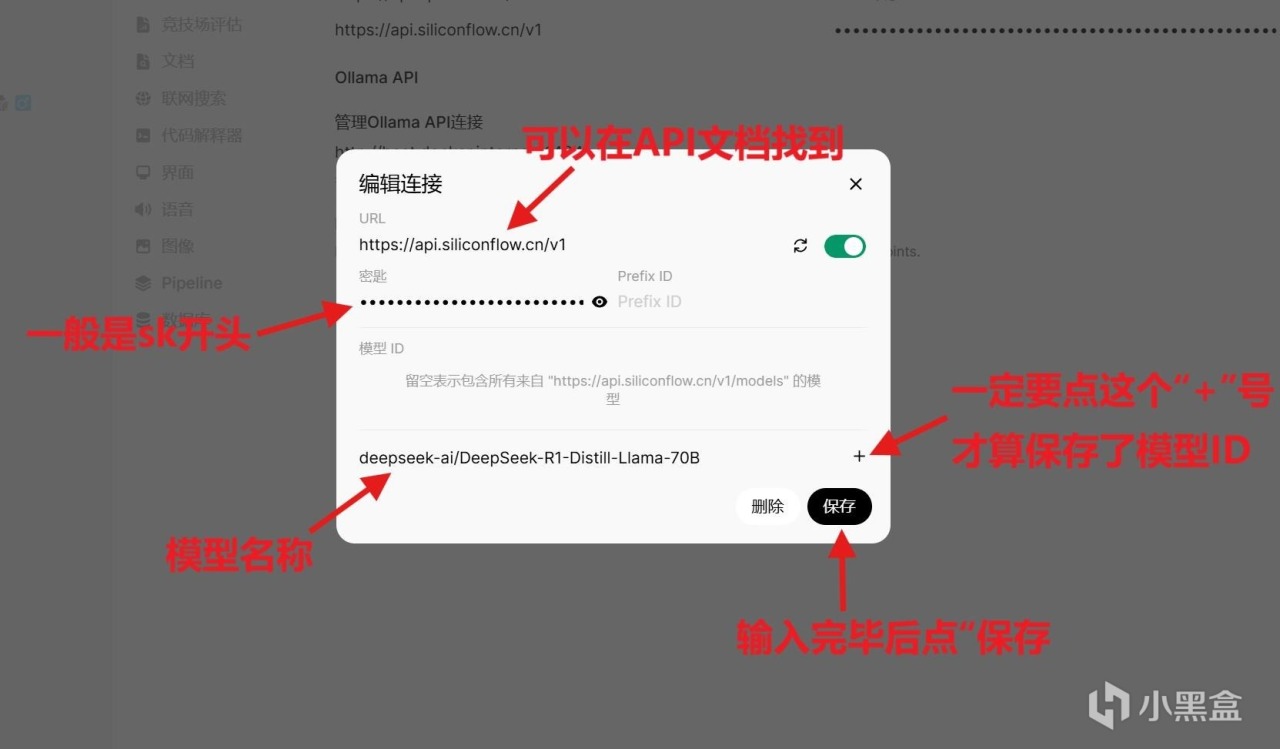 https://api.siliconflow.cn/v1”,密钥则是前面刚刚申请的,硅基流动API一般是sk开头。模型名称指的是使用这个模型的名称,例如本次使用的是DeepSeek-R1 70B,如果换成其他模型,只需要将对应模型名称复制过来就可以。如果不填模型名称是无法调用的。一切设置完毕后,就可以调试了。